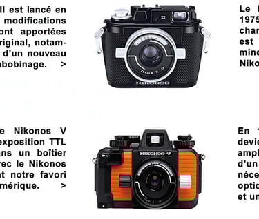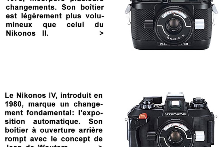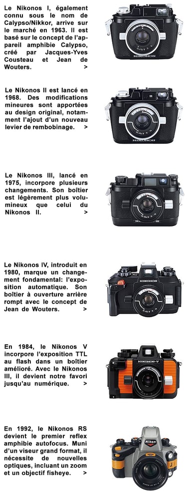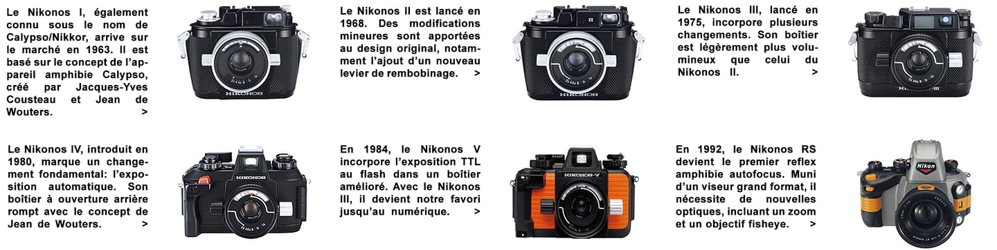 La gamme Nikonos au fil des ans. Notre préféré était le Nikonos III, sorti en 1975.