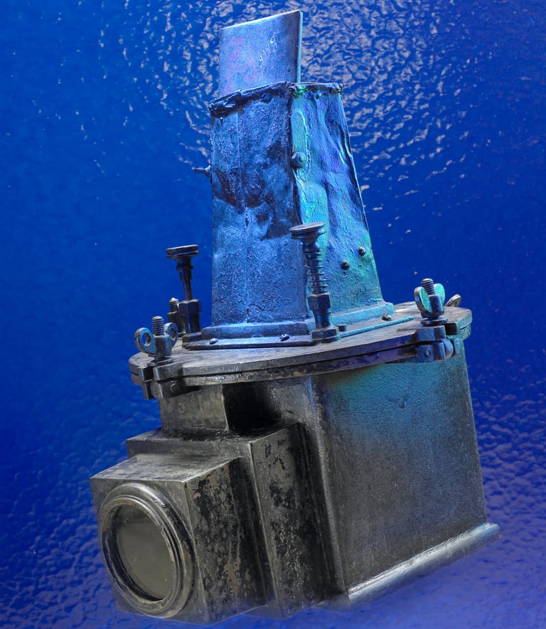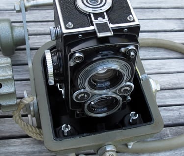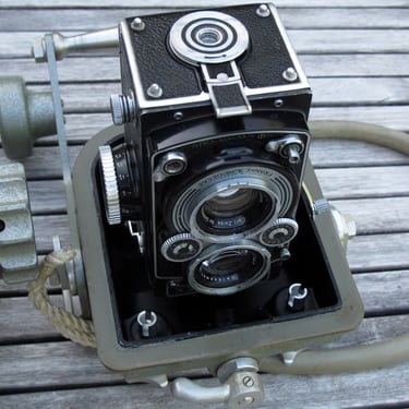 L’appareil photo Rolleiflex monté sur la moitié supérieure du boîtier Rolleimarin. (Source MDP)