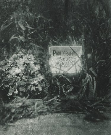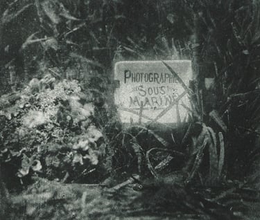 Une photo prise par Louis Boutan. On distingue clairement sur le panneau l’expression « Photographie sous-marine ».