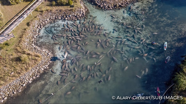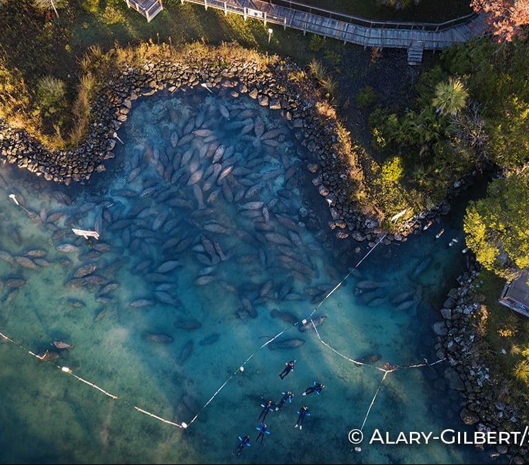 Lamantins et visiteurs.