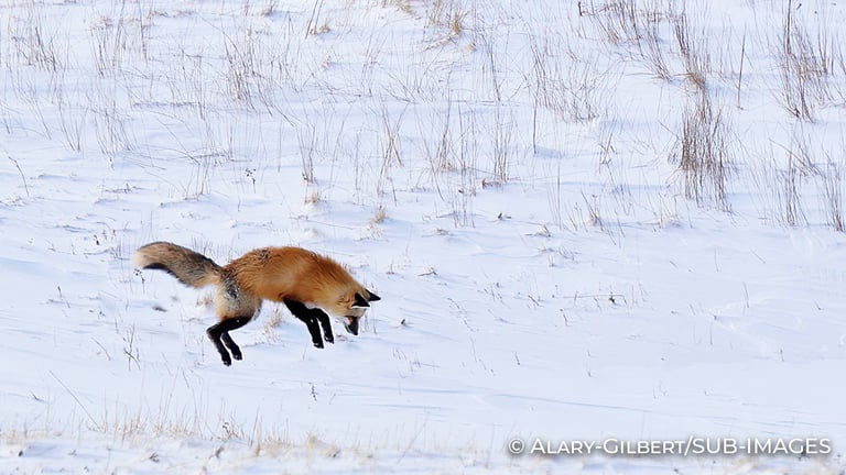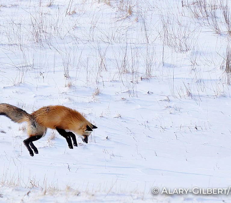 Renard bondissant sur une proie.