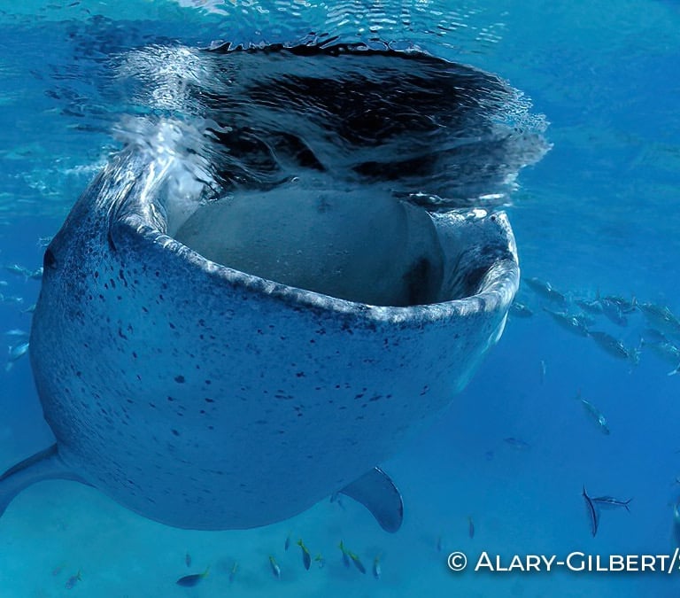Requin baleine en surface.