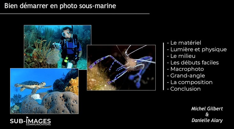 Nos conférences individuelles, d’une durée de 45 à 60 minutes, explorent une variété de sujets touchant les voyages, les destinations de plongée, la photographie sous-marine et la production multimédia.